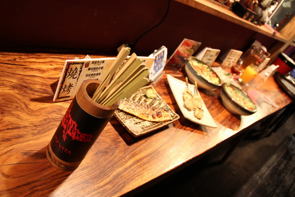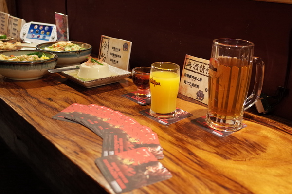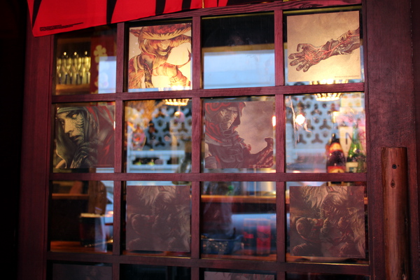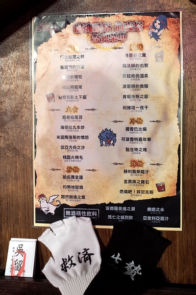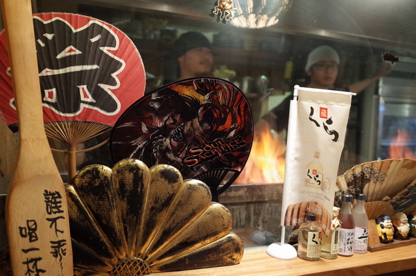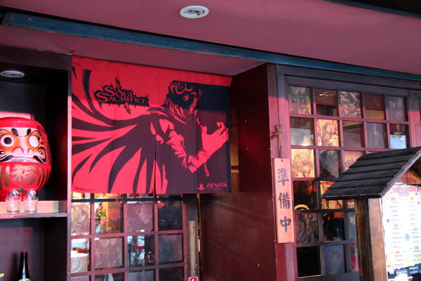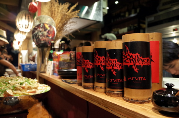 你打從屋頂上的燈籠、大門上的門帘起,即可開始嗅到電玩味兒;走入店裡,更可看到遊戲窗貼、杯墊、竹籤桶、杯墊等各式裝置物。就連這段期間內的菜單,都是來自於《闇魂獻祭》遊戲中的發想!說到這兒……我們好想要一份「米諾陶洛斯的憤怒」了(牛肉炒飯啦)!