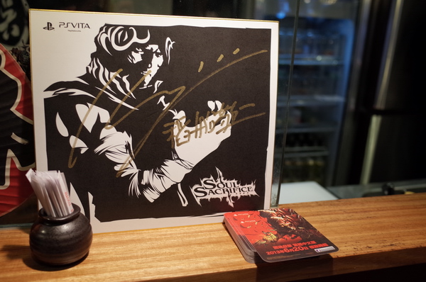 ▲《闇魂獻祭》創作靈魂人物稻船敬二的親筆簽名圖卡,放置於店內顯眼處讓電玩迷們朝聖。